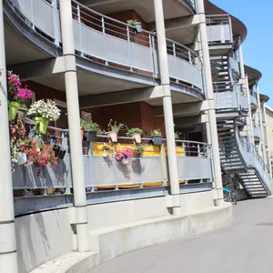 De komfortable værelser er fordelt på tre øverste etager i en fire-etagers bygning fra 1955, der blev moderniseret i 2004. Bygningen rummer i alt 24 lejligheder; seks er to-rums boliger, mens de resterende atten er ét-rums boliger. Hver etage tilbyder fælles spise- og opholdsområder samt en altan, hvilket giver muligheder for både socialt samvær og privatliv. Boligernes udformning og faciliteter er designet til at skabe trygge, moderne omgivelser for alle beboere.